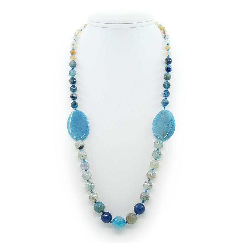 Необычные бусы из натурального голубого агата. Размер бусин в варьируется от 6 до 14мм, длина бус 63см. Размер овальных камней примерно 25х35мм.Узор может отличаться от представленного на фото.