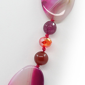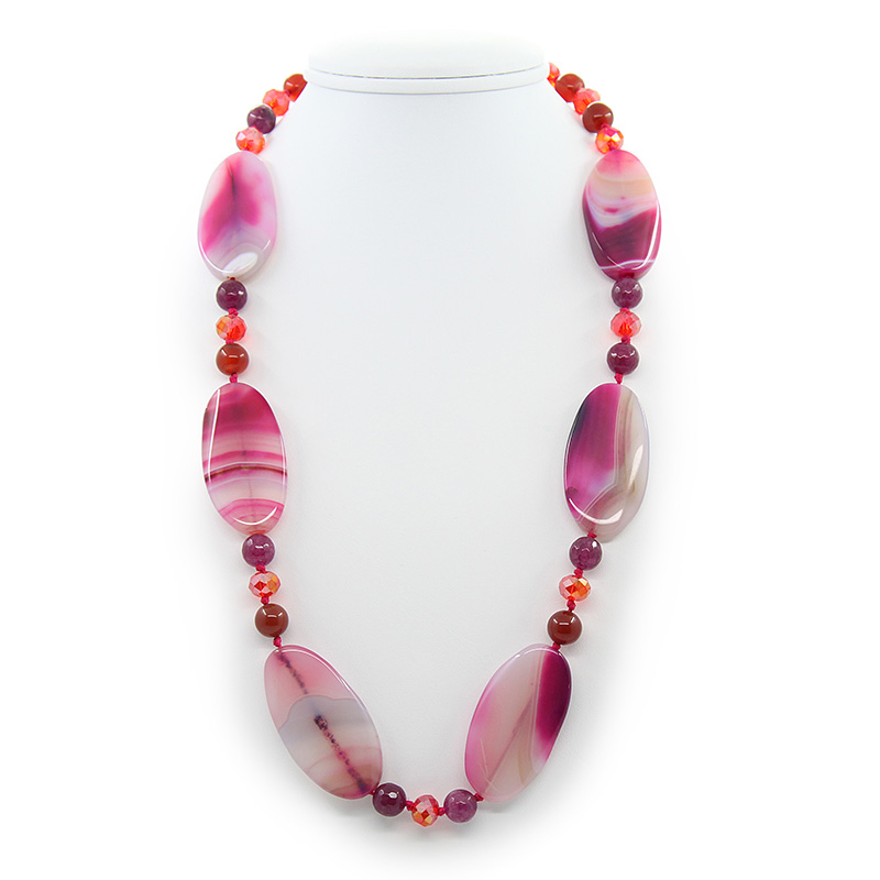 Бусы из натурального розового агата. В бусах используются граненые вставки из чешского стекла цвета "гранат" с переливами. Размер бусин 25х48мм. Длина бус 62см.