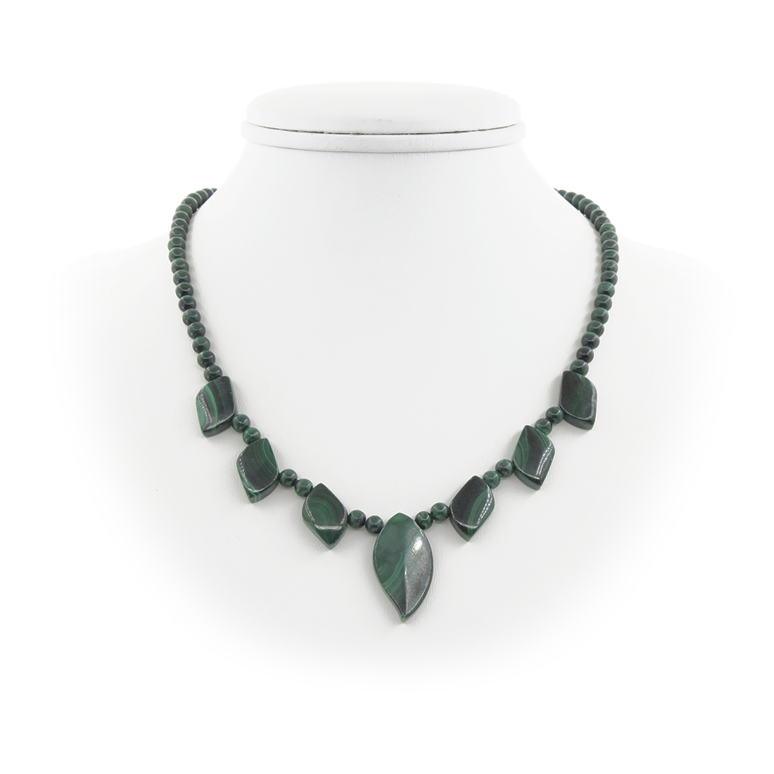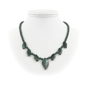 Колье малахит (Заир), круглые бусины 6м, плоские бусины 19...30мм, длина колье 45см