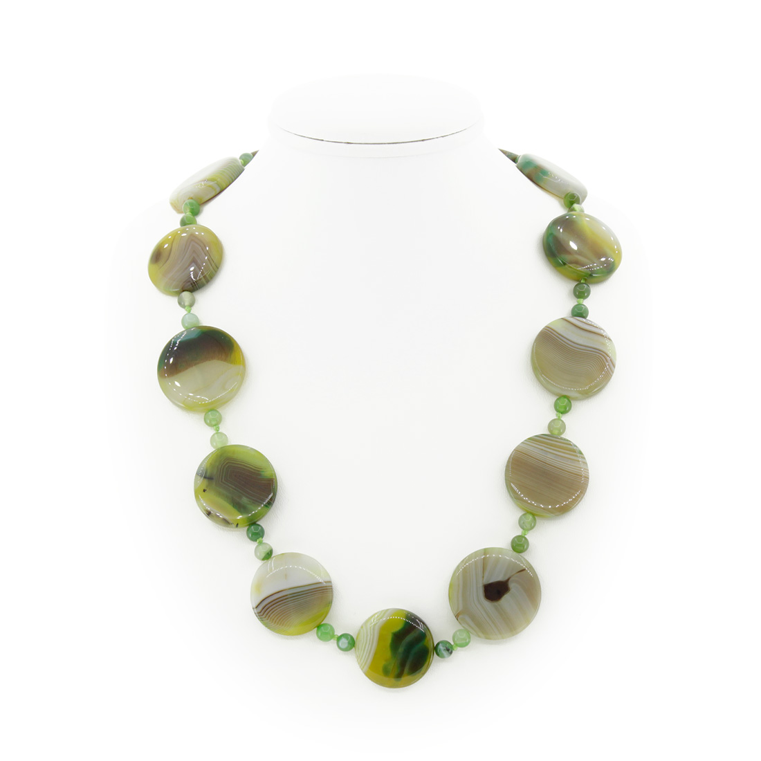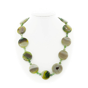 Агат зелено-коричневый, плоские круглые 29см, бусы длиной 63см