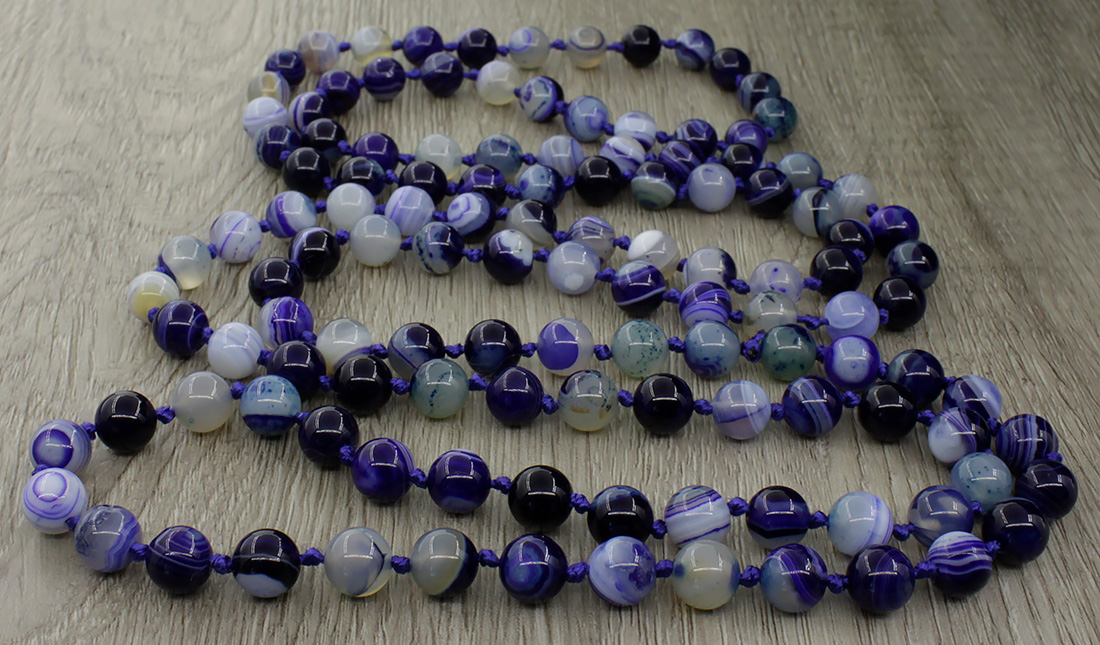 Бусы агат фиолетовый, круглые 8мм, через узелок, длина бус 120см