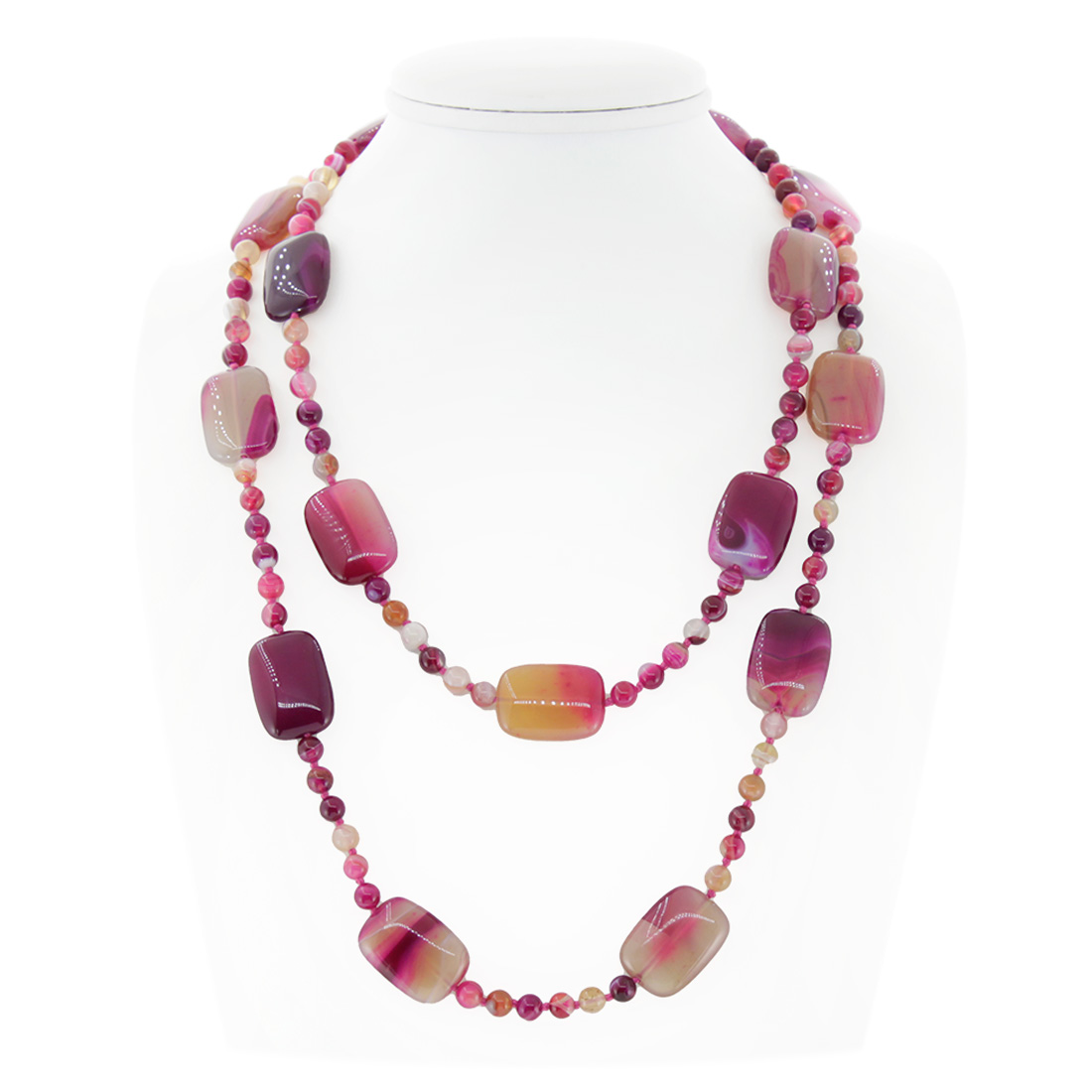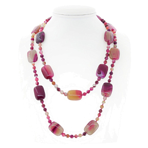 Агат розовый (Бразилия), плоские прямоугольные бусины 18x25мм, бусы "Гармония" длиной 116см