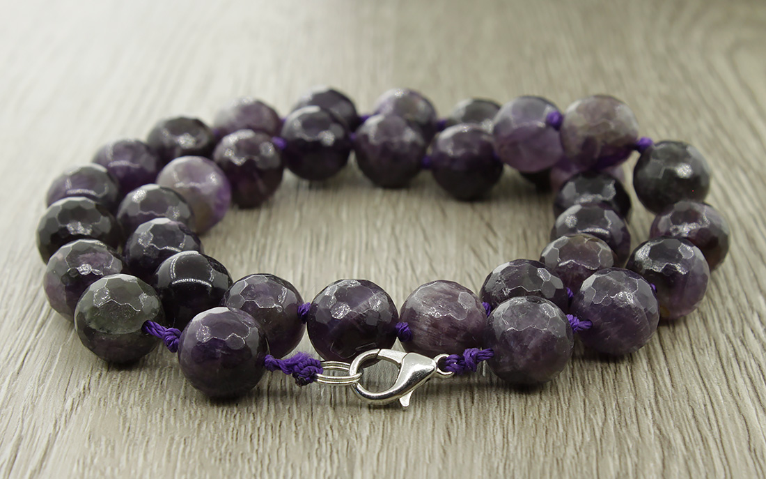 Бусы из натурального аметиста. Эти бусы собраны из граненых шариков размера 11-12мм, длина изделия 50см.