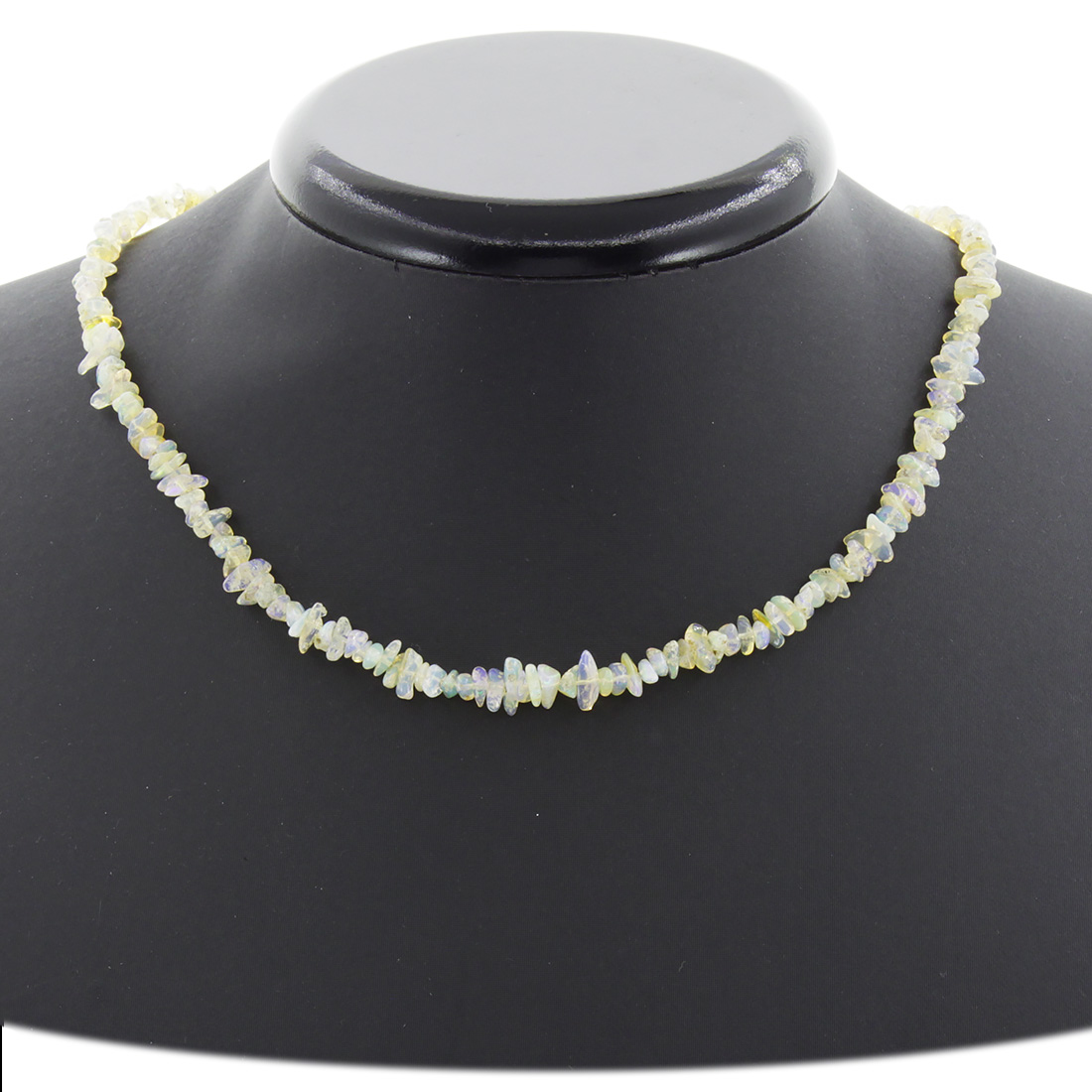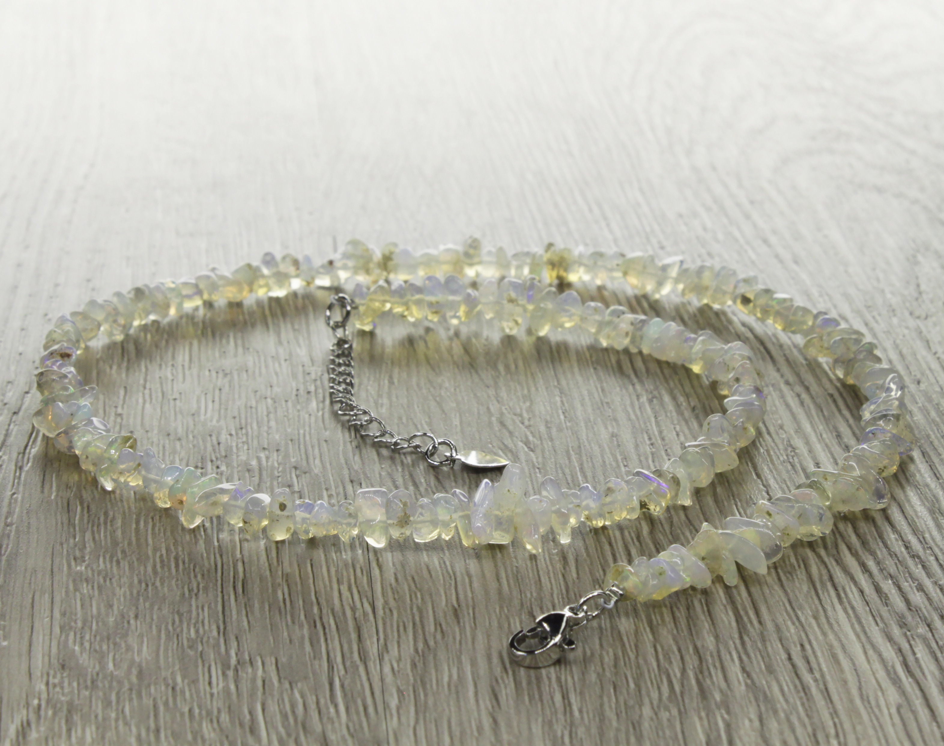 Великолепные бусы из натурального желтого опала подойдут к Вашему повседневному или праздничному образу. Размер гальки 6мм. Длина бус 40,,,45см, регулируется за счет цепочки.