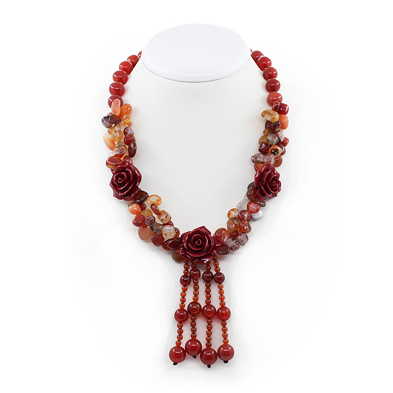 Нежные, очаровательные бусы из натурального сердолика. Бусы выполненны из круглых бусин и гальки разного размера, украшено декоративным элементом-цветком. Бусы застегиваются на удобный замок. Длина изделия 48см.