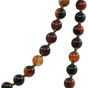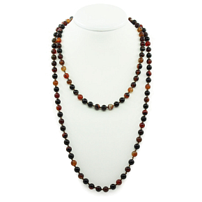 В бусах используется натуральный коричневый агат. Длина бус позволяет обернуть их вокруг шеи два раза или завязать узлом. Диаметр бусин 8мм. Длина бус 122см.