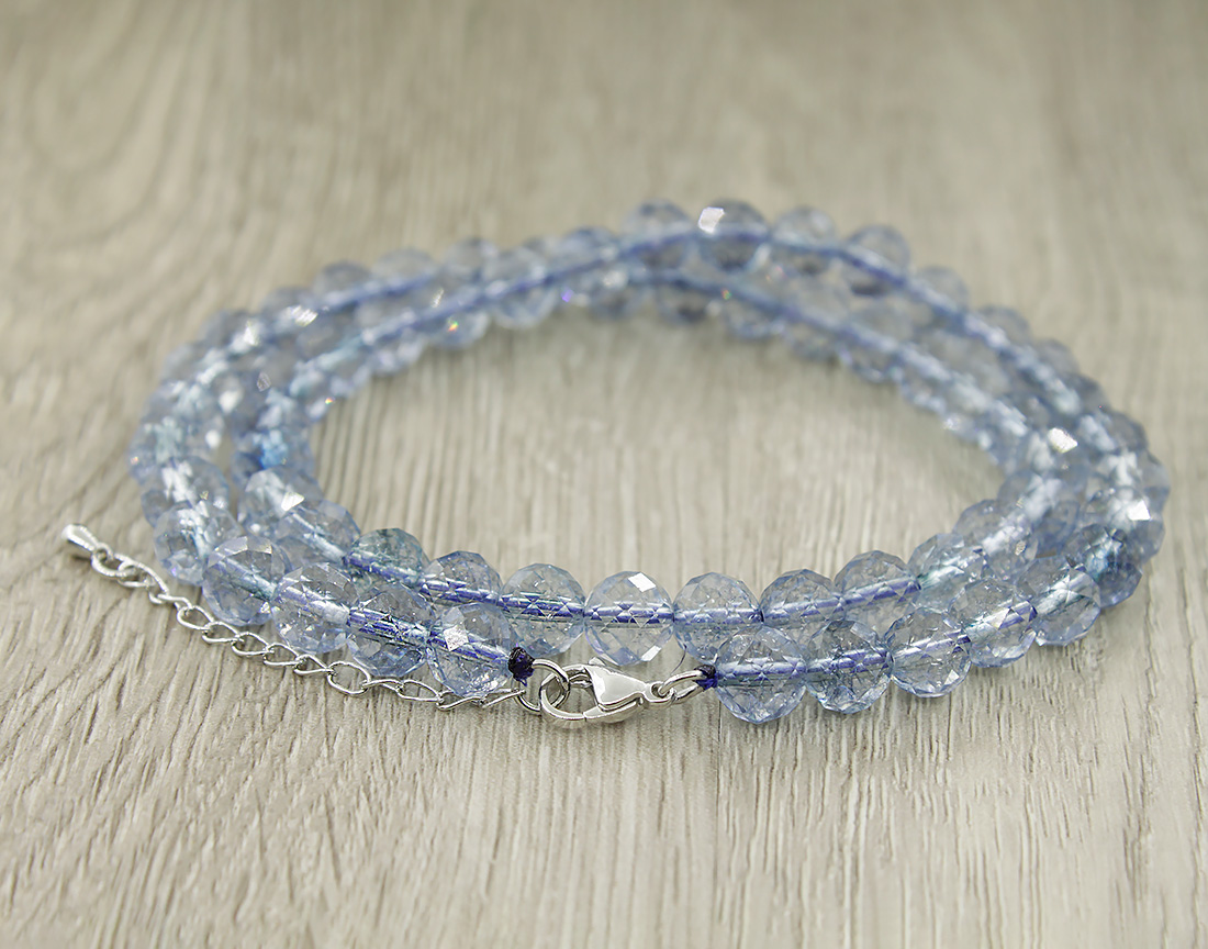 Топаз голубой, круглые гранёные бусины 8мм "Соблазн", бусы длиной 47...52см