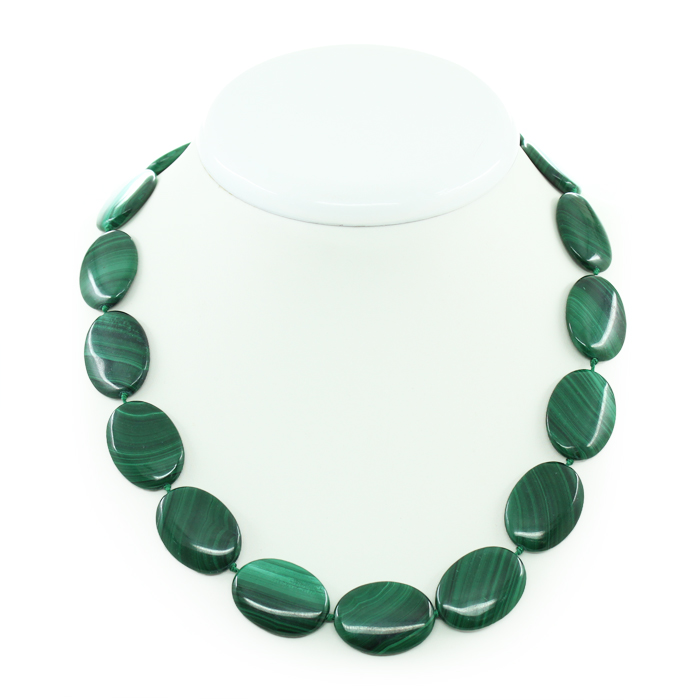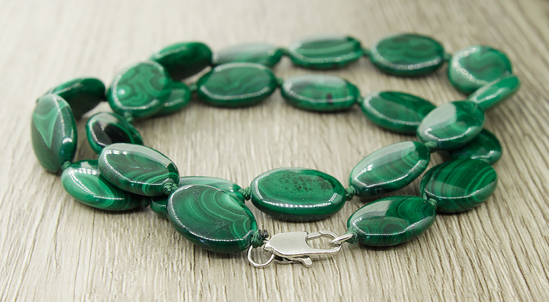 Бусы малахит "Тайна", плоские овальные 13х15мм, короткие 47см