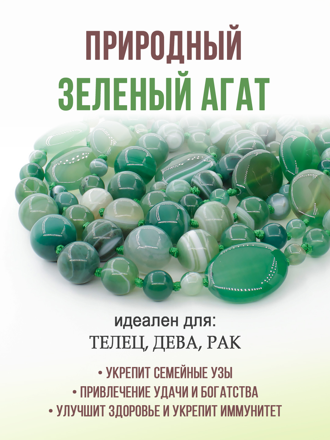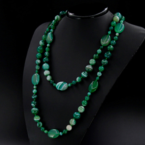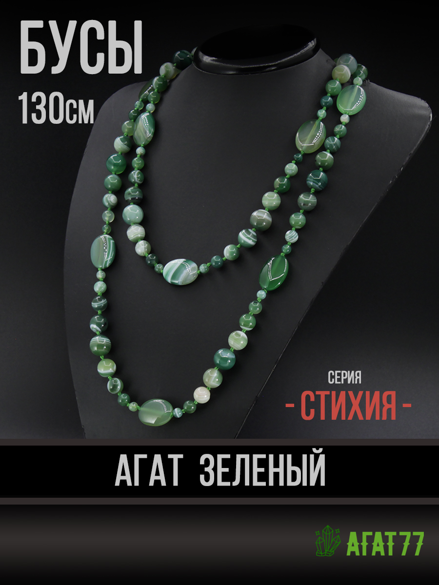 Натуральный зеленый агат — это глубина лесных оттенков и магия слоистых узоров, созданных самой природой. Длина нити позволяет создавать благородные многослойные образы, подчеркивая подлинность и уникальную фактуру живого камня. Диаметр круглых бусин от 6мм до 14мм, плоских овальных 18х25мм. Длина бус 130см.