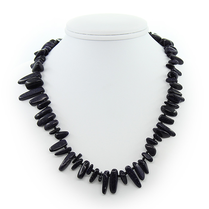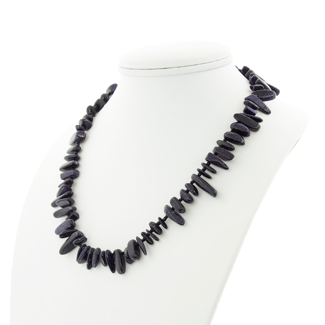 Авантюрин темно-синий "Махито" (имитация), галька с бисером, бусы длиной 47см