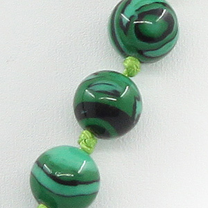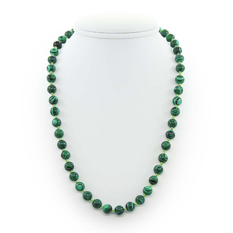 Эти бусы из малахита (имитация) отличаются ярким глянцевым блеском. Диаметр бусин 8мм, длина украшения 48см.