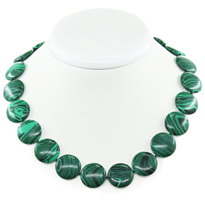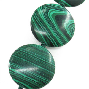 Бусы малахит (имитация), плоские круглые 14мм, короткие 49см