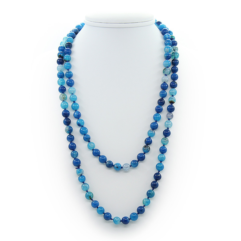 Бусы синий агат, круглые 8мм, длиной 130см
