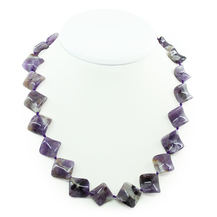 Бусы аметист "Завиток", плоские ромбы витые 15мм, короткие 45см