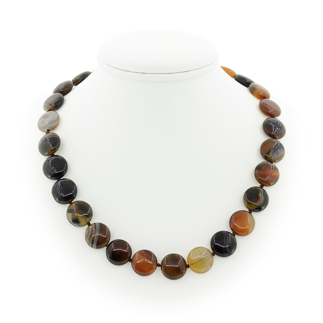 Агат коричневый (Ботсвана), плоские круглые 16мм, бусы длиной 50см