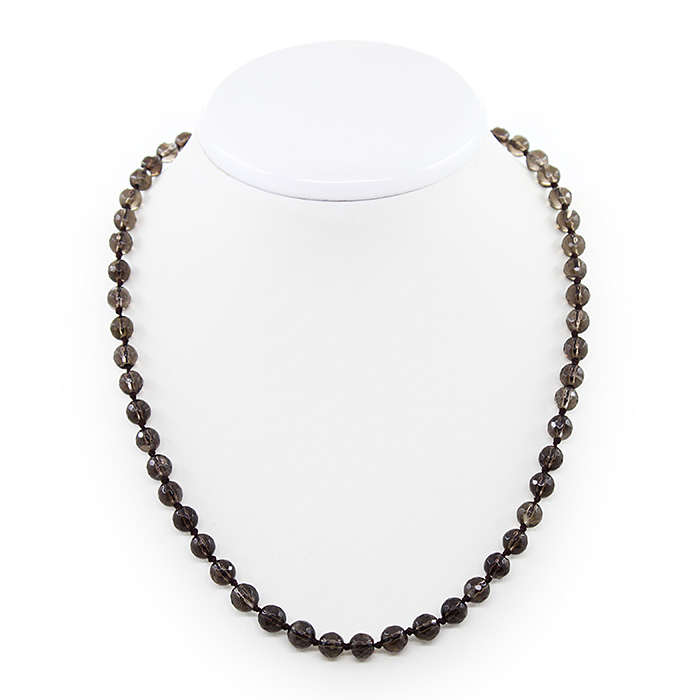 Эти изящные бусы выполнены из искусственного раухтопаза. Бусины обладают интересной огранкой. Диаметр бусины 8мм, длина изделия 49см.