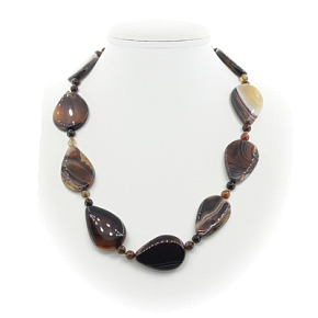 Бусы агат коричневый, плоская капля 22х32мм, средние 54см