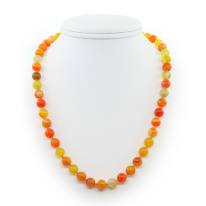 Бусы агат оранжевый, круглые 8мм, короткие 45см