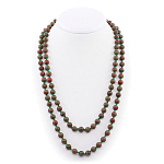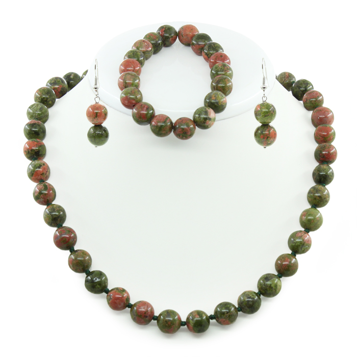 Комплект Бусы, браслет и серьги унакит, круглые 10мм, короткие 50см