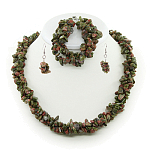 Набор из унакита. Длина бус 50см, минимальная длина браслета 18. Диаметр бусин 10мм. Длина сережки с замком 4см.