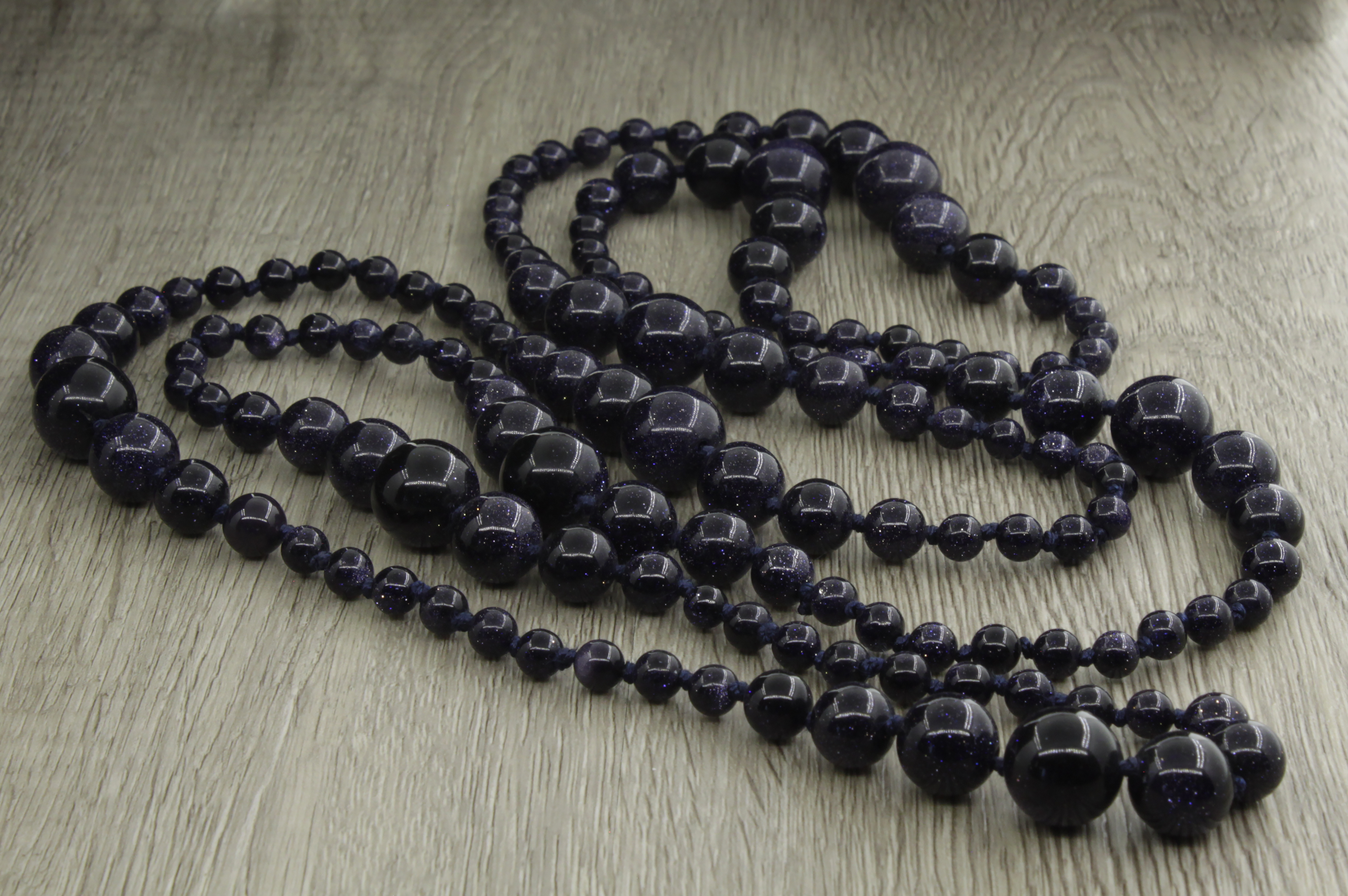 Бусы авантюрин синий 6..14мм, бусы "Равновесие", длина бус 150см