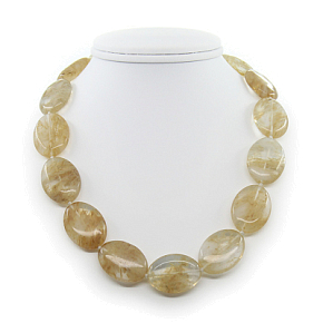 Бусы кварц желтый, плоские овальные 22х30мм, короткие 48см
