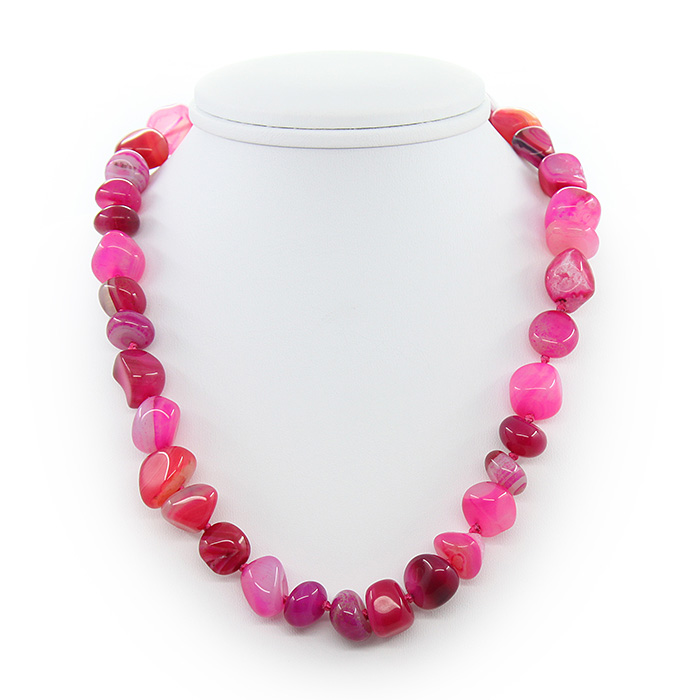 Бусы агат ярко-розовый, галтовка, короткие 45см
