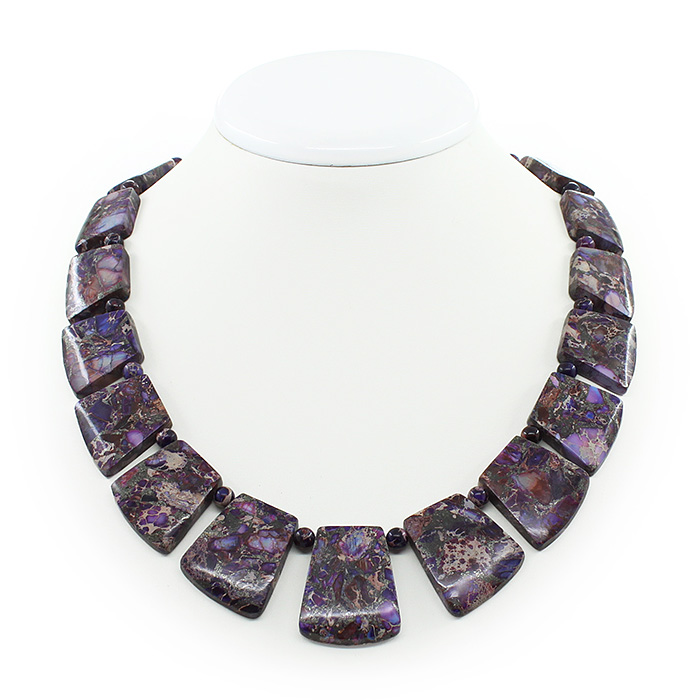 Колье варисцит фиолетовый "Лилиана", круглые 6мм, короткое 51см
