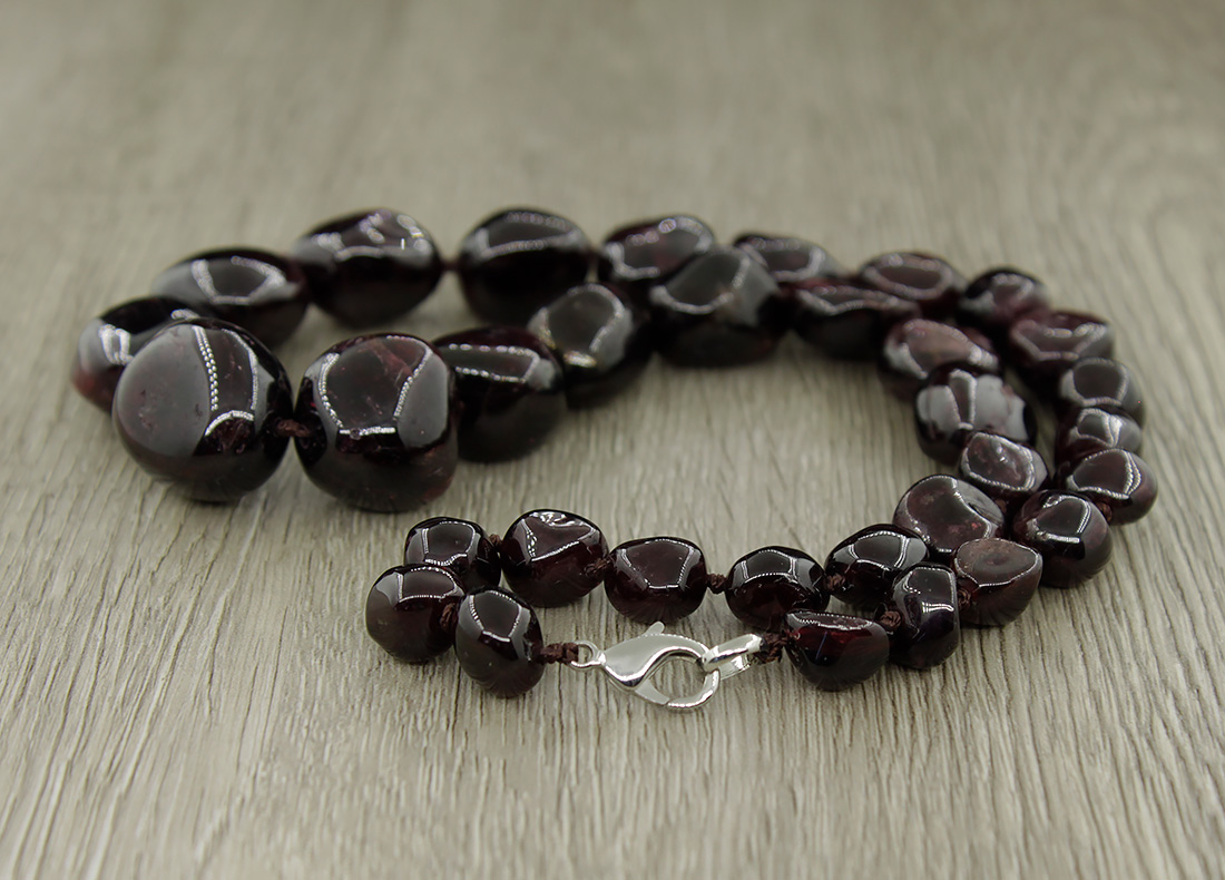 Бусы гранат, галтовка разноразмерные 9...21мм, короткие 55см