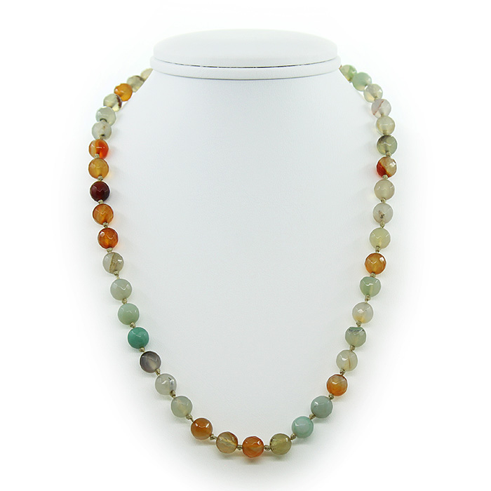 Бусы сердолик и голубой агат, круглые граненые 8мм, короткие 45см