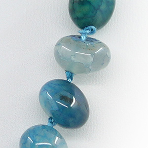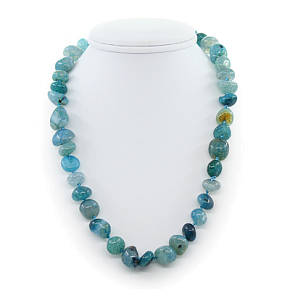 Бусы из натурального голубого агата в форме галтовки. Длина бус 45-52см (регулируется с помощью удлинняющей цепочки). Средний размер бусин 12х13мм.