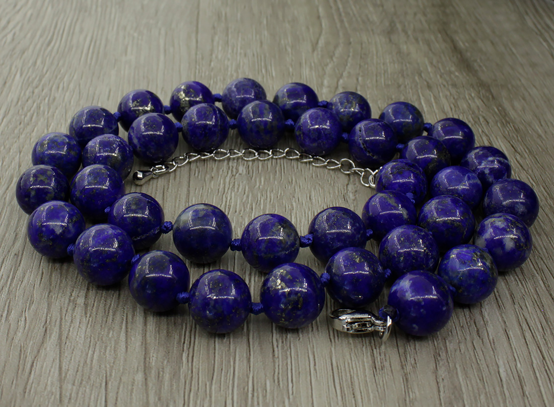 Потрясающие бусы из натурального афганского лазурита. Диаметр бусин 10мм, длина бус 47см+ цепочка.