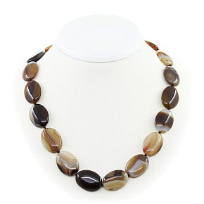 Бусы агат бежевый, плоский овал 18х24мм, короткие 50см