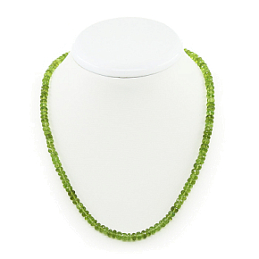 Это утончённое украшение собрано из граненых бусин натурального хризолита высокого качества. Одним из главных свойств хризолита является его положительный заряд энергии, который он отдает своему владельцу. Камни имеют форму кукурузки и собраны индийскими мастерами вручную. Размер бусин от 4 до 5 мм. Длина 46см.