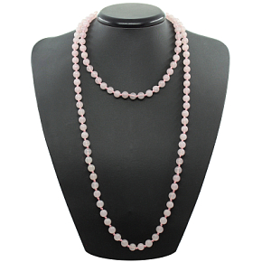 Бусы из ярко-розового полупрозрачного кварца. Длина бус позволяет обернуть их вокруг шеи два раза или завязать узлом. Диаметр бусин 8мм, длина изделия 120см.