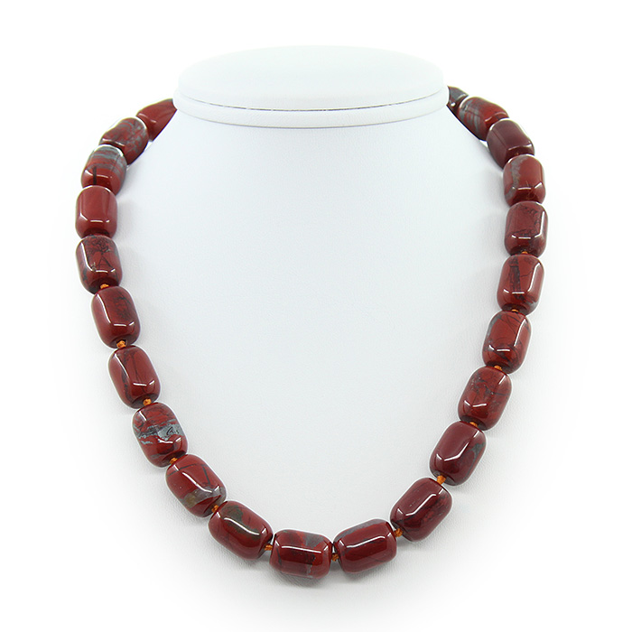 Бусы яшма красная "Винтаж", бочонки 12х16мм, короткие 45см