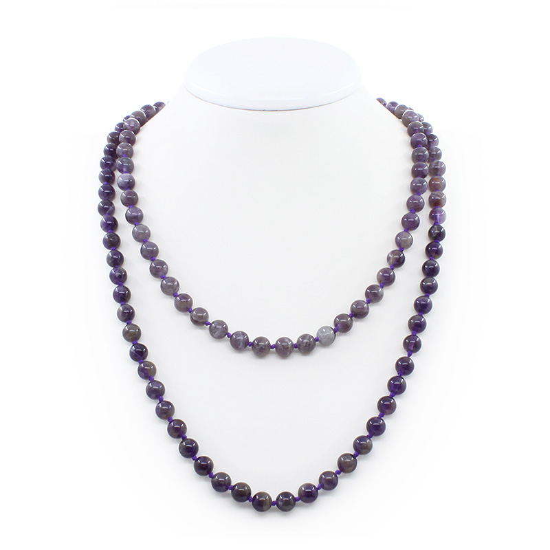 Бусы из натурального аметиста. Длина бус позволяет обернуть их вокруг шеи два раза или завязать узлом. Диаметр бусин 8мм, длина изделия 114см.
