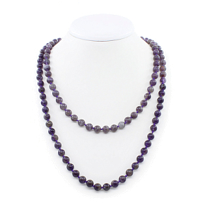 Бусы из натурального аметиста. Длина бус позволяет обернуть их вокруг шеи два раза или завязать узлом. Диаметр бусин 8мм, длина изделия 114см.