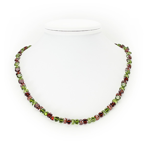 Бусы фианит "хризолит+гранат" темный, граненые, короткие 40см