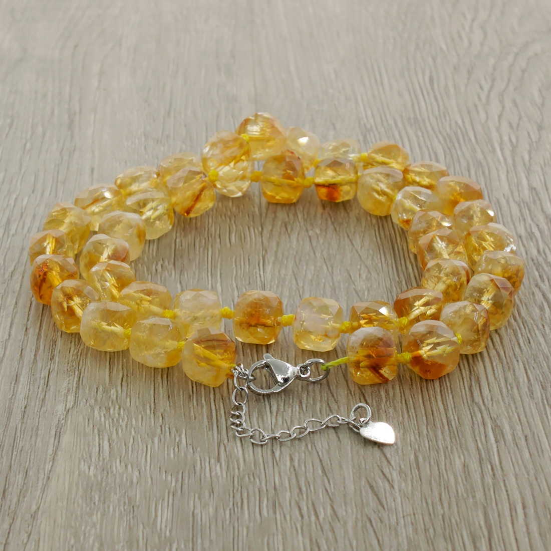 Цитрин, кубики гранёные 8,5мм, "Текта" бусы длиной 45см