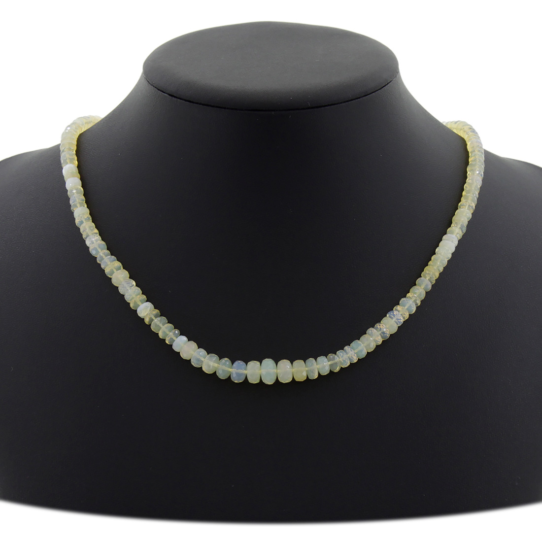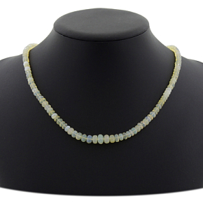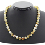 Бусы из натурального цитрина светлого цвета, собраны из граненых овальных шариков размера от 5 до 9мм. Длина изделия 46см.