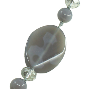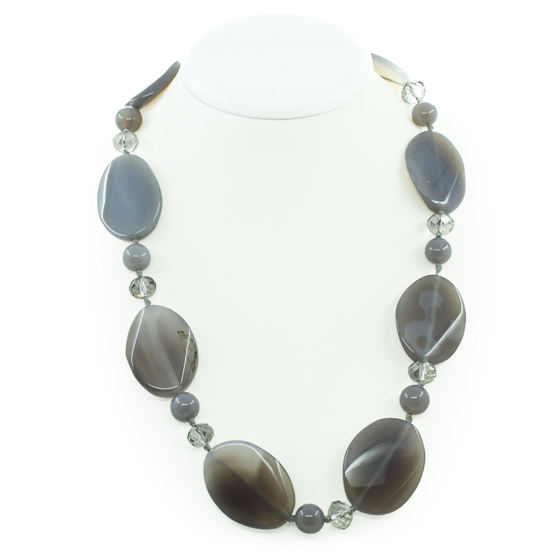 Бусы агат серый, плоские овальные 30 х 40мм, короткие 55см