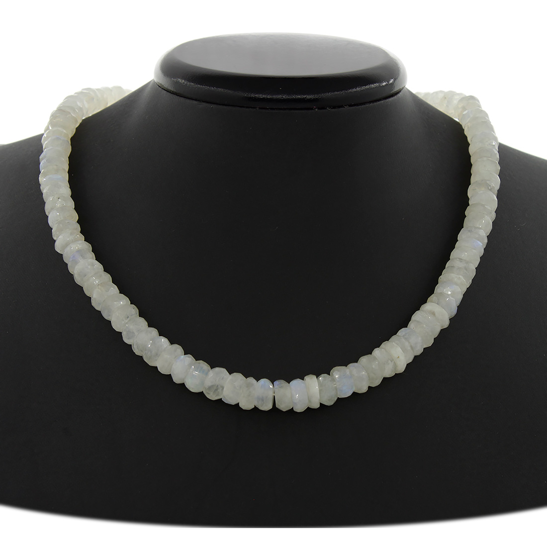 Лунный камень (Индия), приплюснутые круглые гранёные бусины 10мм, бусы "Мекка" длиной 47см