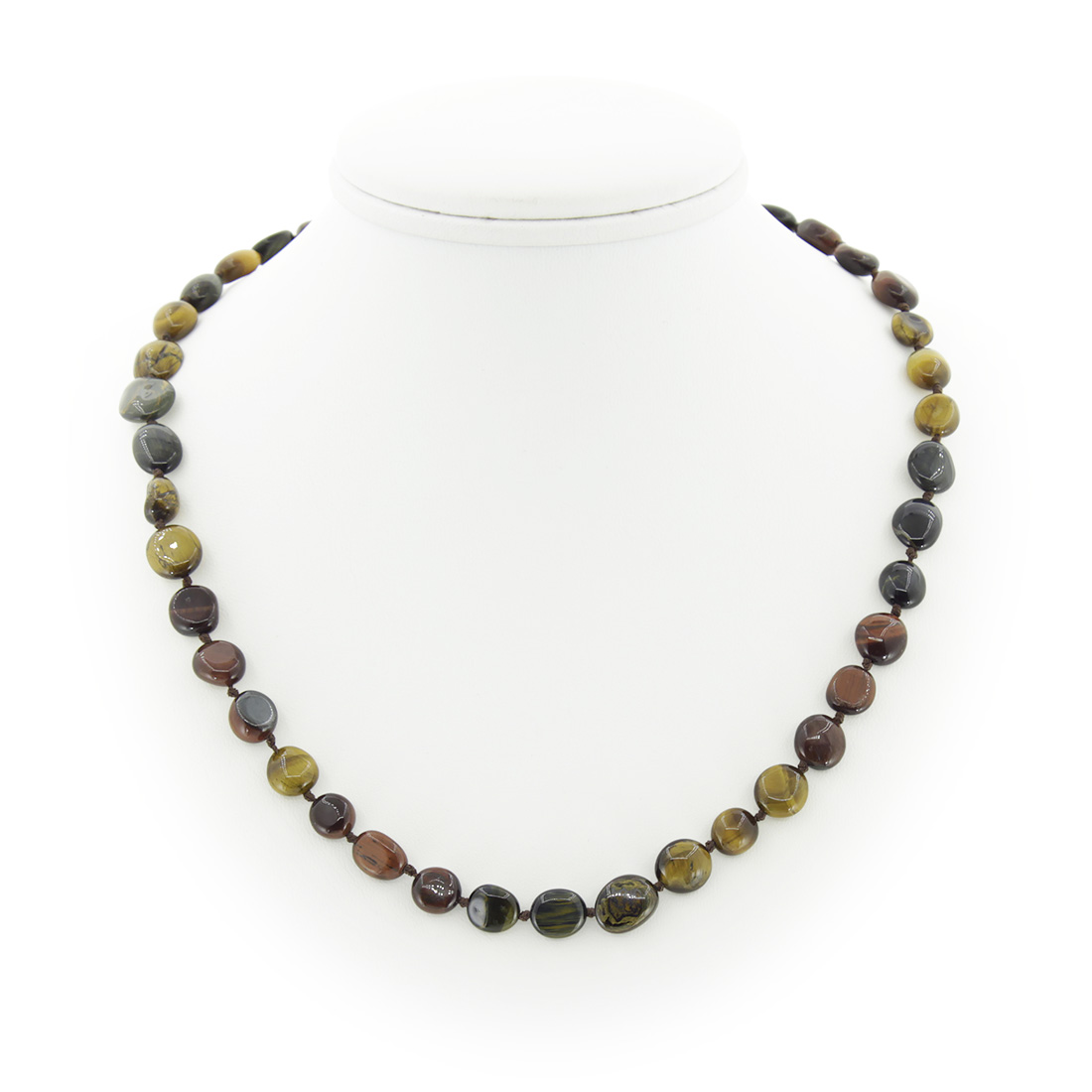 Тигровый, бычий и соколиный глаз галтовка, бусы длиной 50см