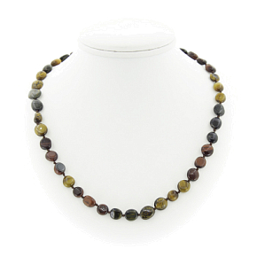 Бусы натурального тигрового, бычьего и соколиного глаза в форме галтовки. Размер бусины примерно 10х12мм. Длина изделия 50см.