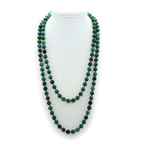 Бусы из хризоколлы (имитация). Длина бус позволяет обернуть их вокруг шеи два раза или завязать узлом. Диаметр бусин: 8мм, длина бус: 120см.