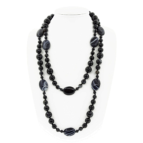 Агат черный (Бразилия), разноразмерные с плоскими овалами, бусы "Стихия" длина бус 128см