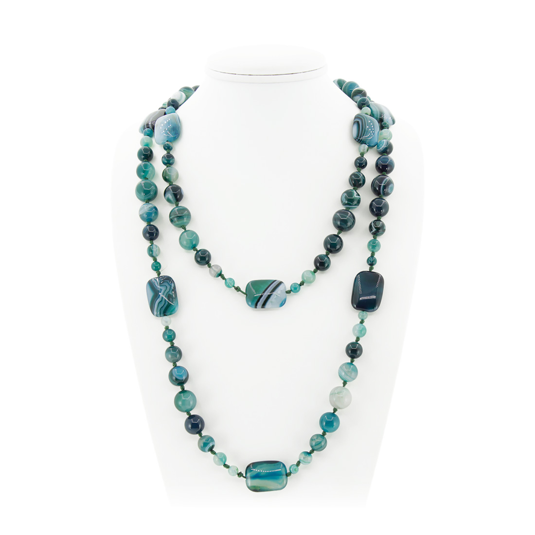 Агат зеленый (Бразилия), разноразмерные круглые с плоскими прямоугольниками 18х25мм, бусы "Стихия" длиной 138см