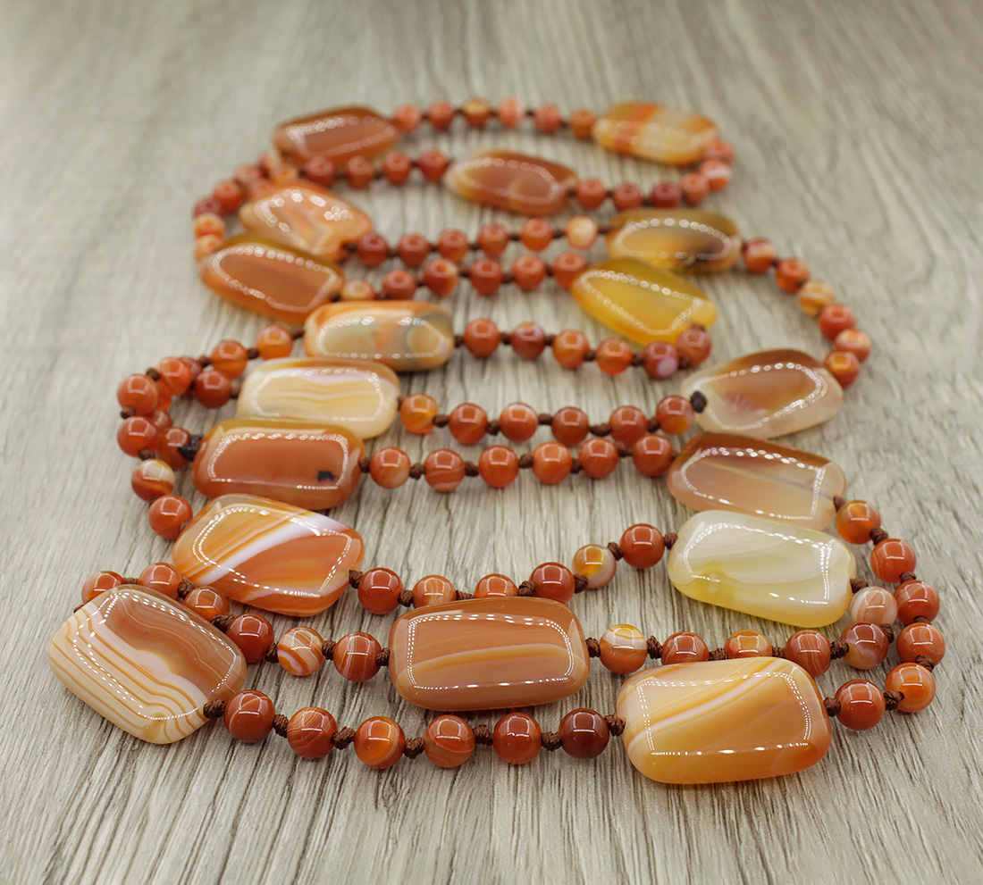 Запоминающиеся бусы из натурального сердолика. Бусы дополнят яркими красками Ваш повседневный или праздничный образ. Длина бус позволяет носить их в два яруса или завязать узлом. Диаметр круглых бусин 6мм, плоских прямоугольных 18х25мм. Длина бус 124см.