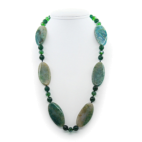 Бусы из натурального зеленого агата. В бусах используются граненые вставки из чешского стекла с переливами. Размер бусин 24х48мм. Длина бус 62см.